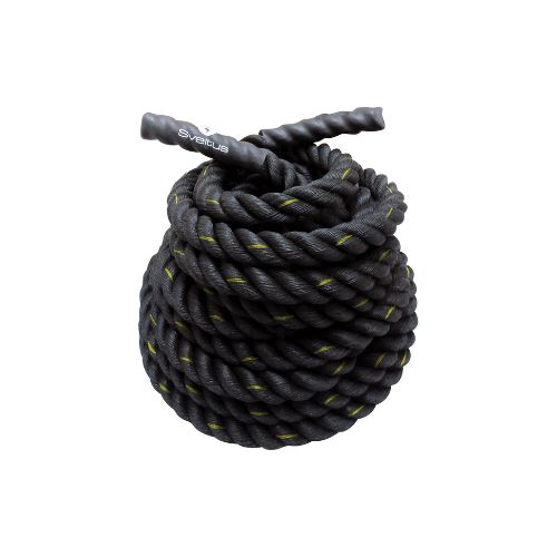 La Battle rope Sveltus L 10 m Ø26 mm est une corde d’oscillation en polyester tressé destinée aux entraînements intensifs. Elle intègre des poignées en PE et des rubans protecteurs à chaque extrémité pour limiter l’effilochage et améliorer la prise.
